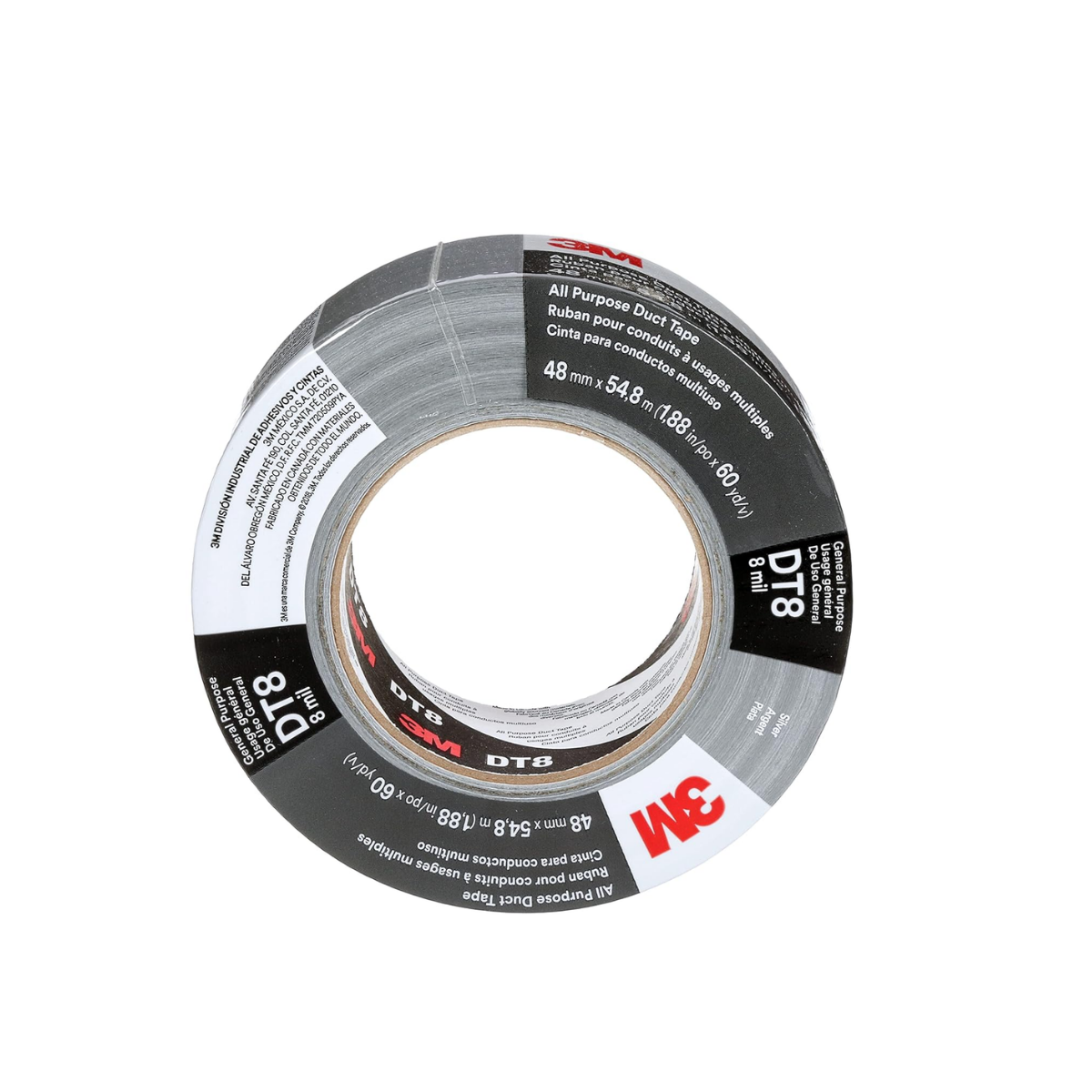 Constructed of polyethylene film laminated to cloth with a natural rubber adhesive, this aggressive tape resists curling and tears off the roll cleanly even when used in challenging jobs. 3M™ All Purpose Duct Tape DT8 is designed to provide a versatile, conformable, quick-stick solution for demanding applications.