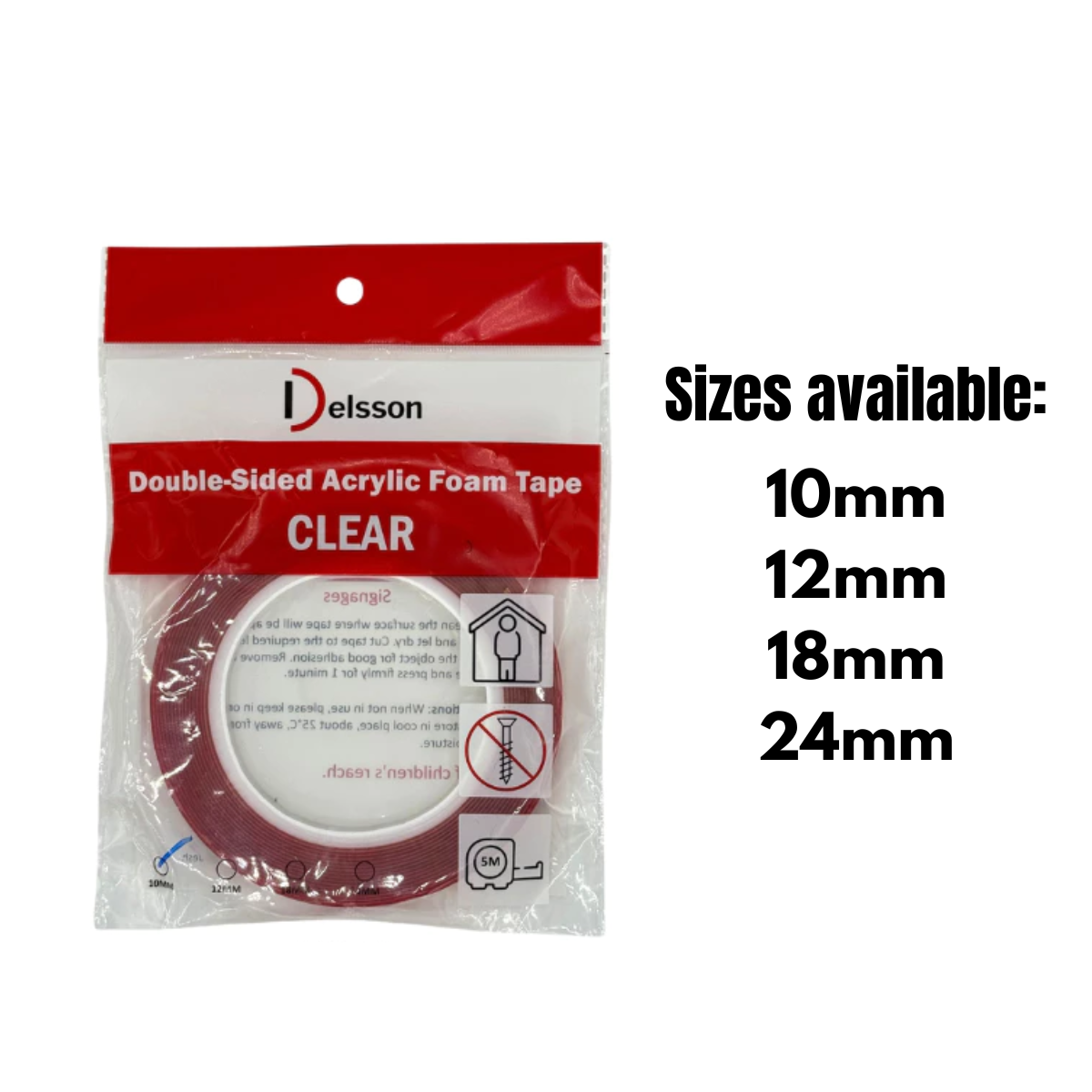 Delsson Double-sided Acrylic Foam Tape Clear (Assorted Sizes)