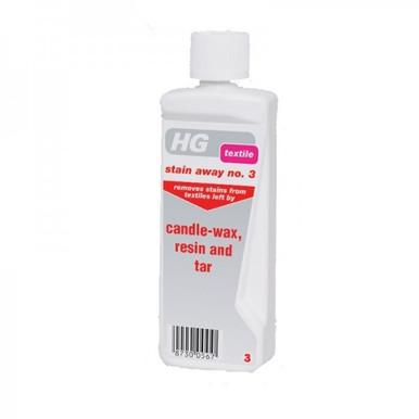 HG stain away no .3 removes stains from textiles caused by candle wax, resin and tar.