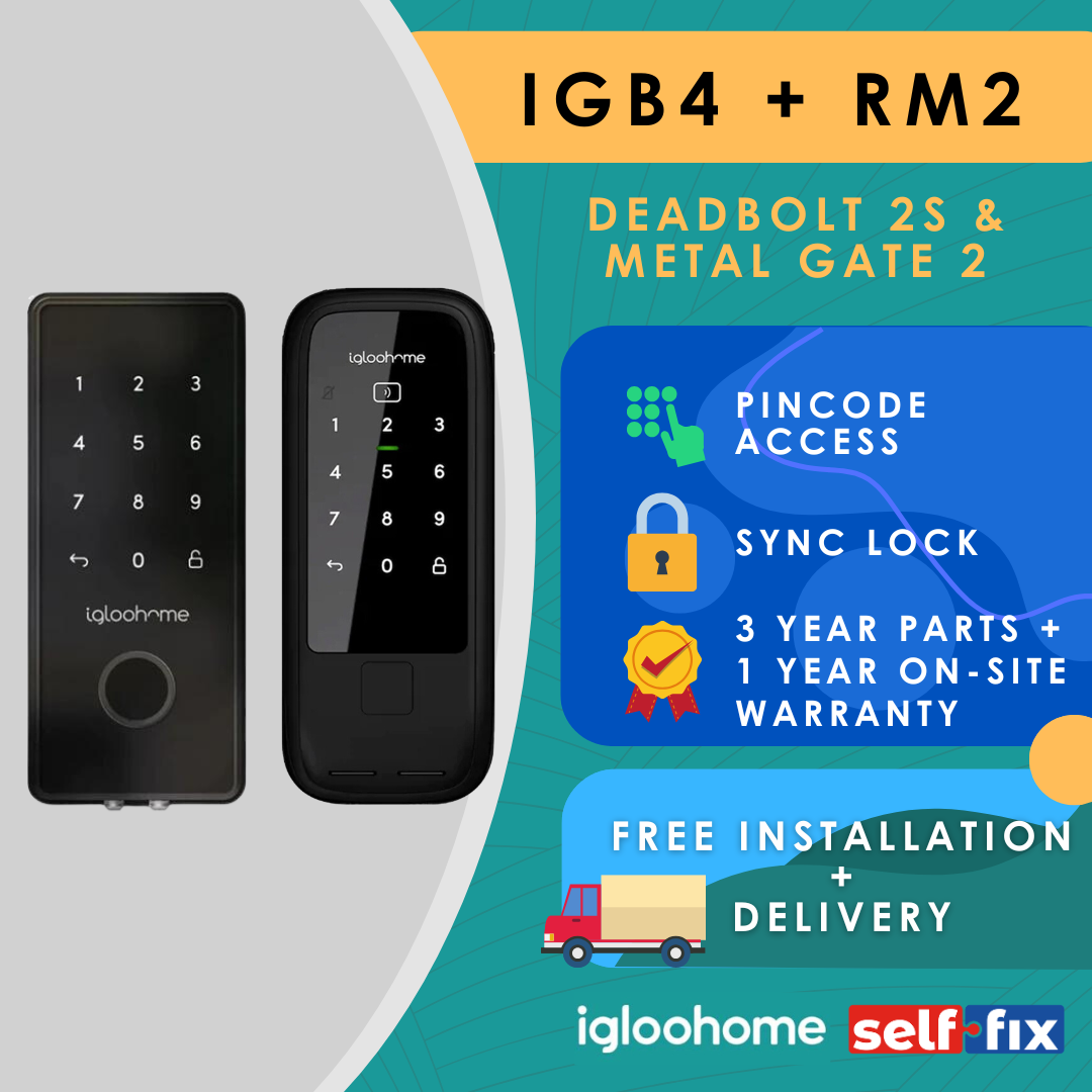 IGB4 Digital Lock IglooHome + RM2 Bundle (Deadbolt 2S Metal Grey + Rim Lock Metal Gate 2)