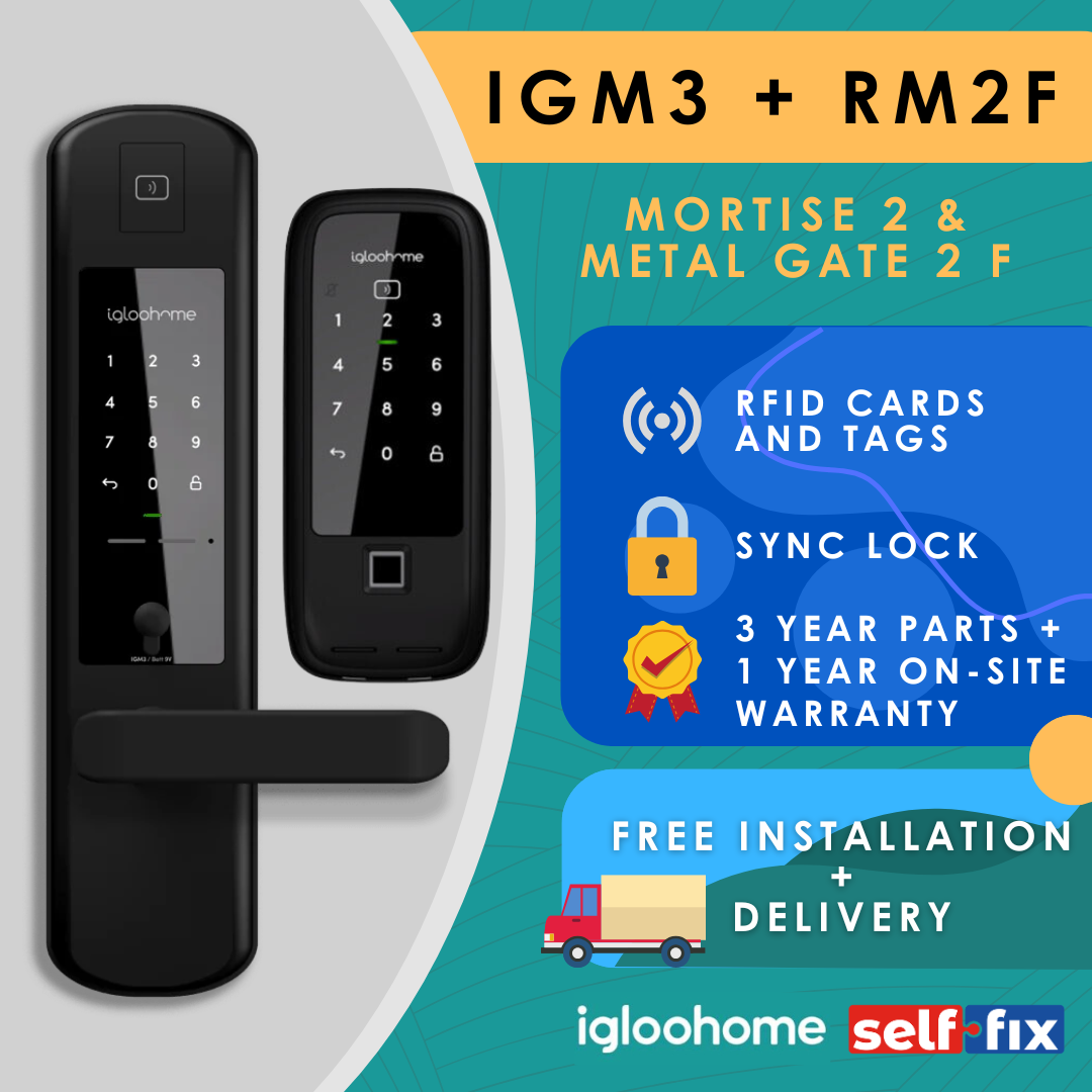 IglooHome RM2F + IGM3 Digital Lock Bundle (Rim Lock Metal Gate 2 + Mortise 2)