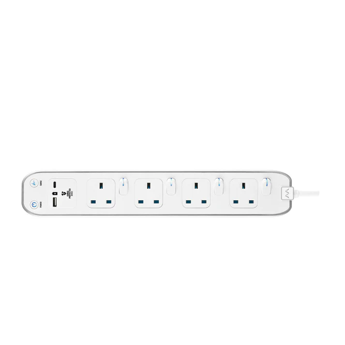 With a sleek high gloss finish, the Masterplug USB Surge Extension Lead offers four individually switched sockets and two USB ports (USB-C PD20W & USB-A). It's ideal for safely powering and charging multiple devices at home or in the office while protecting them against electrical surges and spikes.